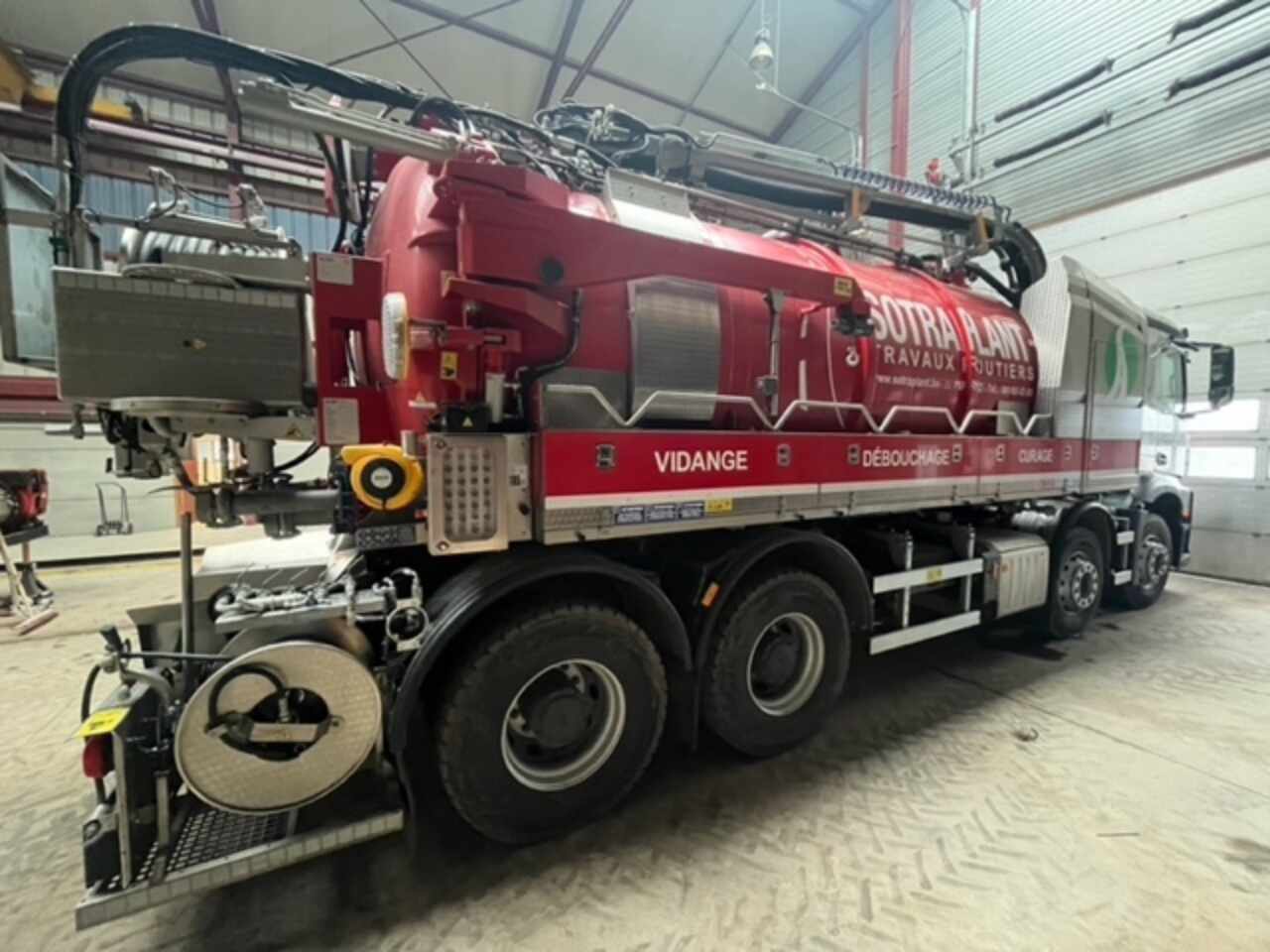 Sotraplant a décidé de s'équiper d'une toute nouvelle cureuse-aspiratrice. Cette machine, destinée à curer les avaloirs, chambres de visites et autres puisards, a été spécialement conçue par notre fournisseur Marcel Van Dijk, à partir d’un châssis de camion Mercedes.