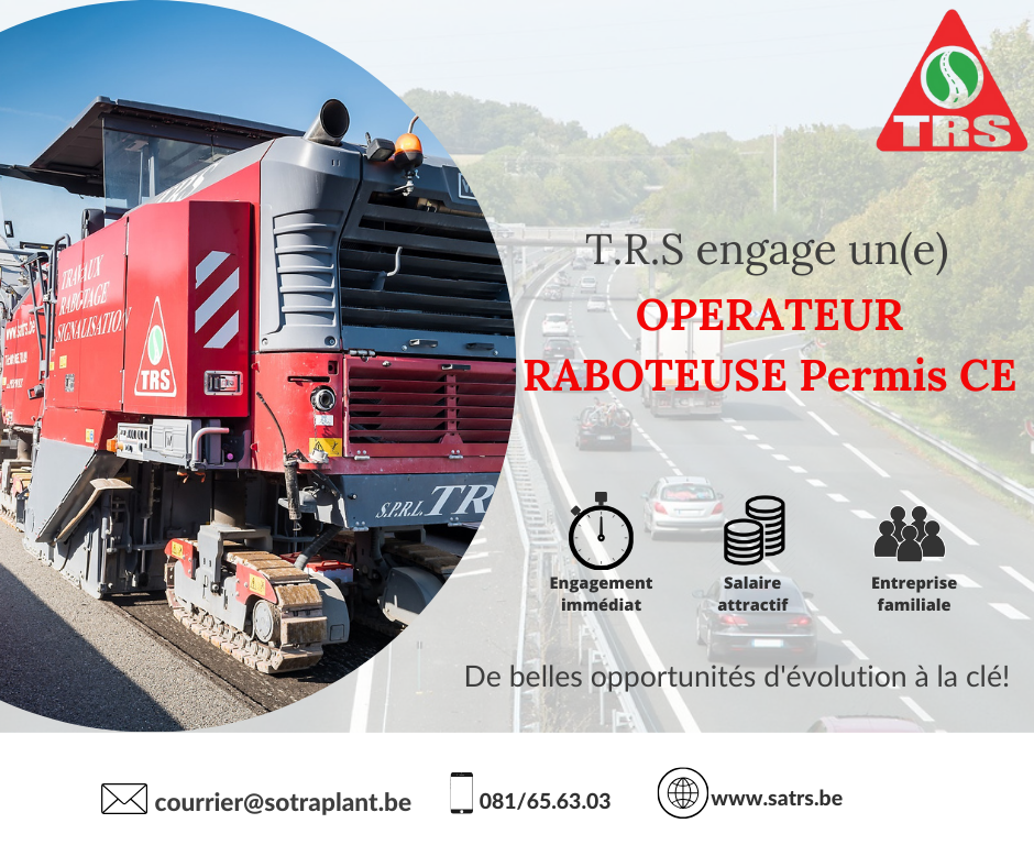 Perwez / Temps pleinVous êtes attiré par le secteur de la construction ? Vous avez les compétences, l’envie d’apprendre et la motivation nécessaires pour exercer le métier de raboteur – permis CE obligatoire ? Vous souhaitez intégrer une entreprise familiale en pleine croissance, qui valorise ses collaborateurs et offre de la stabilité ? Cette opportunité est faite pour vous !
